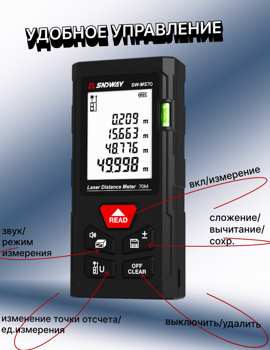 Купить Лазерная рулетка дальномер строительный SNDWAY MS 70 метров с доставкой по всей России. Лазерная рулетка дальномер строительный SNDWAY MS 70 метров: сравнение цен, характеристики, фото, актуальное наличие и цены.