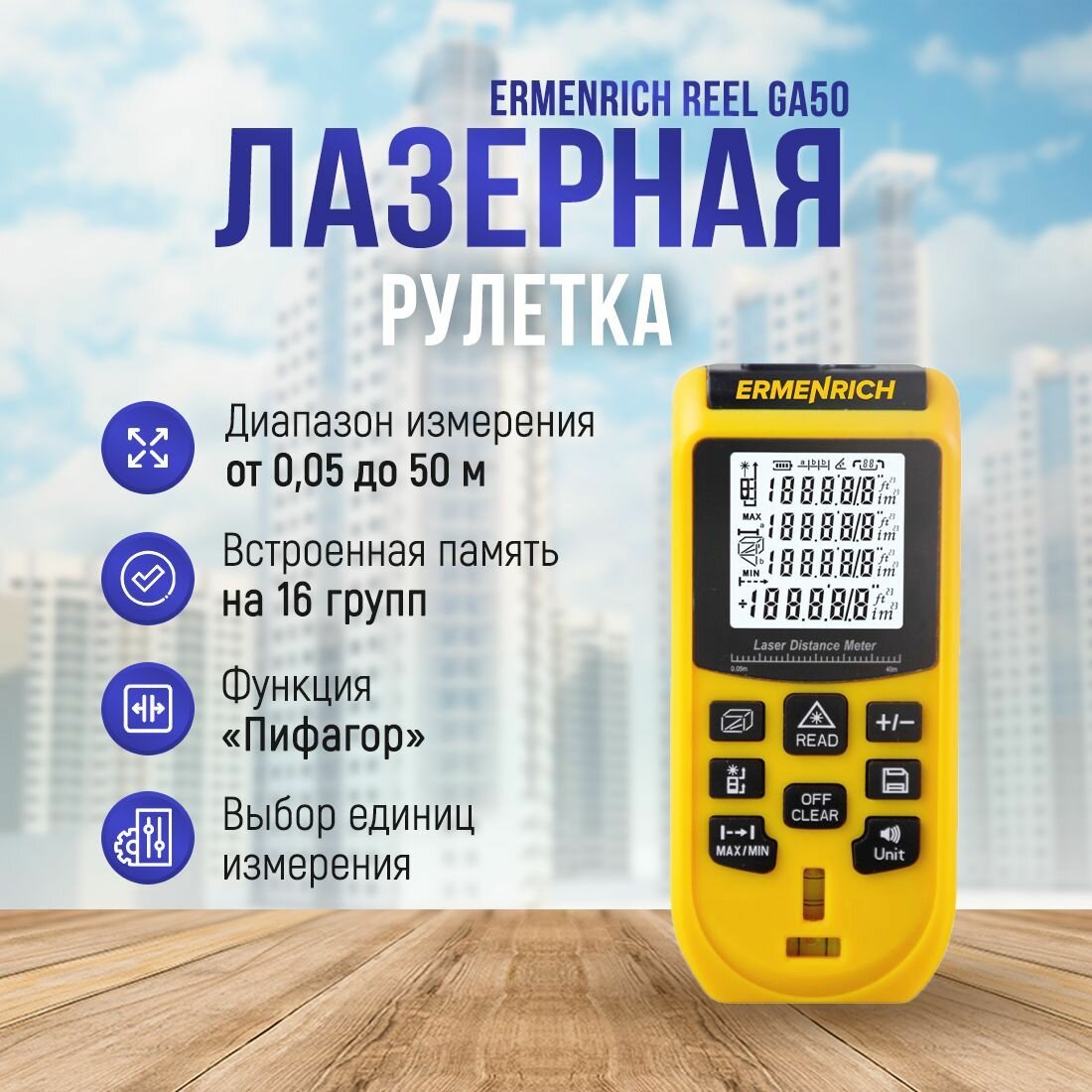 Купить Лазерная рулетка Ermenrich Reel GA50 с доставкой по всей России. Лазерная рулетка Ermenrich Reel GA50: сравнение цен, характеристики, фото, актуальное наличие и цены.