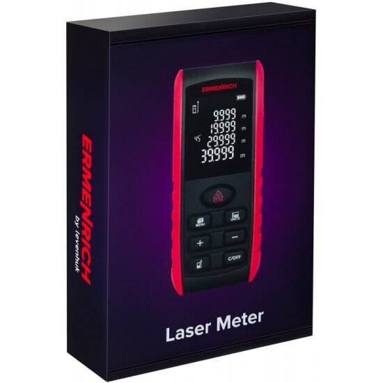 Лазерная рулетка Ermenrich Reel GE100 – компактный прибор, который позволяет решать сразу множество задач в строительстве, ремонте, быту. Он позволяет с точностью до 2 миллиметров определять расстояние от точки до точки, а также вычислять площадь, объем, измерять углы объектов. Рулетка имеет также функцию «Пифагор» – расчет расстояния по промежуточным измерениям. Это удобно, когда нет возможности установить рулетку в нужную точку или на пути луча находится препятствие.