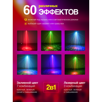 Улучшенный визуальный эффект: 3 комбинации лазерного луча (красный, зеленый, красный и зеленый), 7 цветных фонов (красный, зеленый, синий, красный и зеленый, красный и синий, синий и зеленый, красный и зеленый и синий), 1 комбо эффект (смесь лазерного луча и цветового фона), предоставляет вам незабываемые ощущения от лазерного шоу!