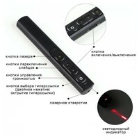 Лазерная указка-презентер, ААА, 2.4 G 30 метров, 650 нм, дальность лазера 200 м, чёрная