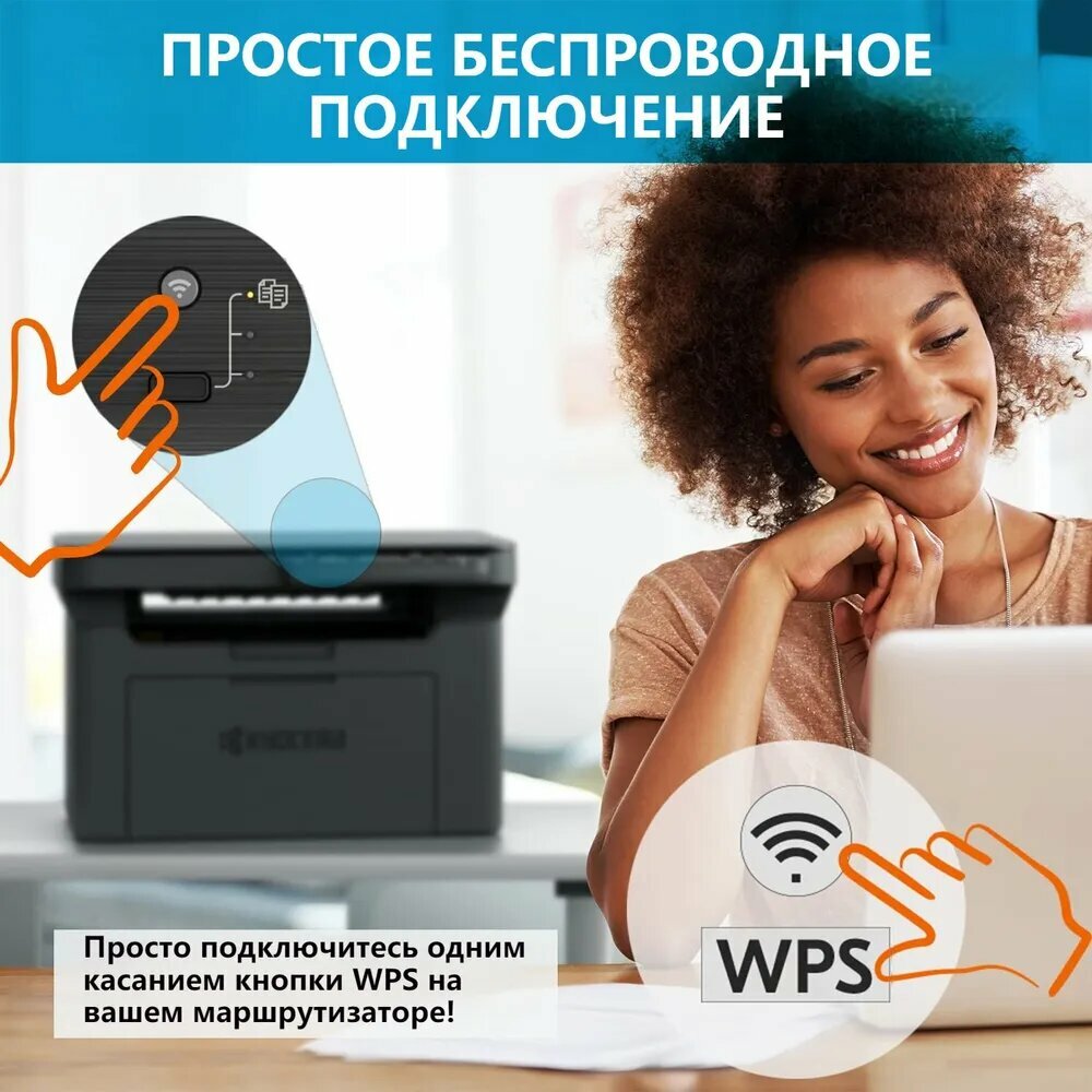 Лазерное МФУ KYOCERA MA2000W ч/б A4 с Wi-Fi USB в черном матовом корпусе