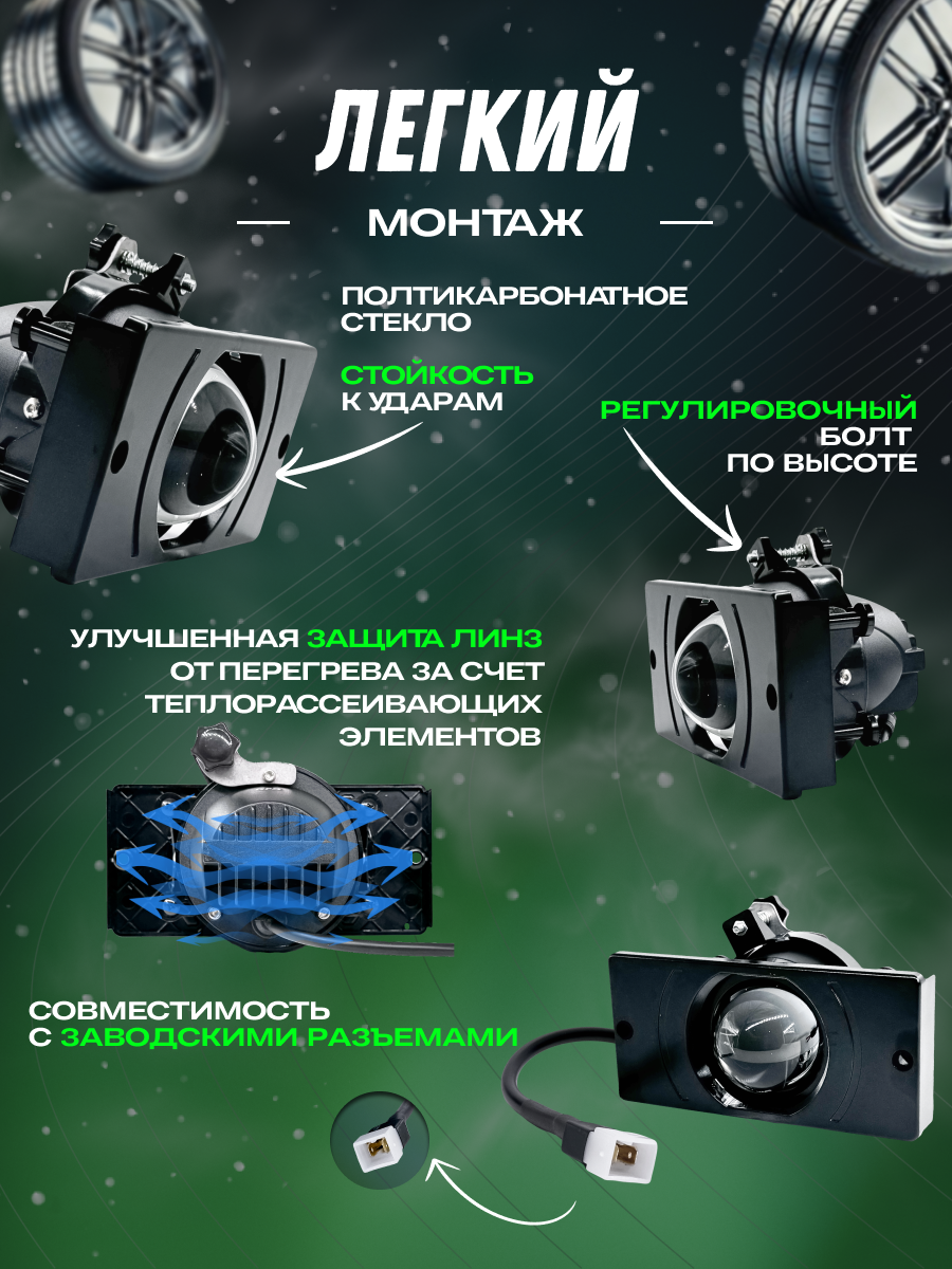 При выборе таких элементов важно учесть высокую эффективность используемых светодиодов. Это гарантирует яркий и равномерный световой поток с минимальным энергопотреблением. Такие птф значительно превосходят по характеристикам обычные лампы и служат намного дольше.