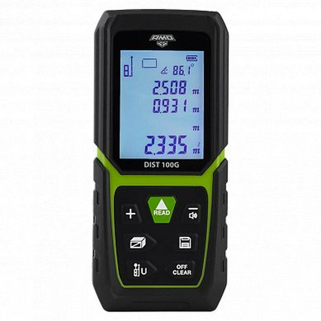 Лазерный дальномер AMO DIST 100G, точность ±2 мм, дальность 100м, Li-Ion 3,7В, 850мАч, IP54