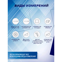 Точность измерений составляет 2 мм, а скорость измерения - 0,2 сек, что делает его на уровне с профессиональными моделями. Максимальная дальность измерения составляет 40 метров.