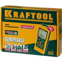 Лазерный дальномер KRAFTOOL Laser-Kraft с точностью ±1 5 мм и защитой IP67 для измерений от 5 см до 70 м с 8 функциями и питанием от 2 батарей АА: сравнение цен, характеристики, фото, актуальное наличие и цены.