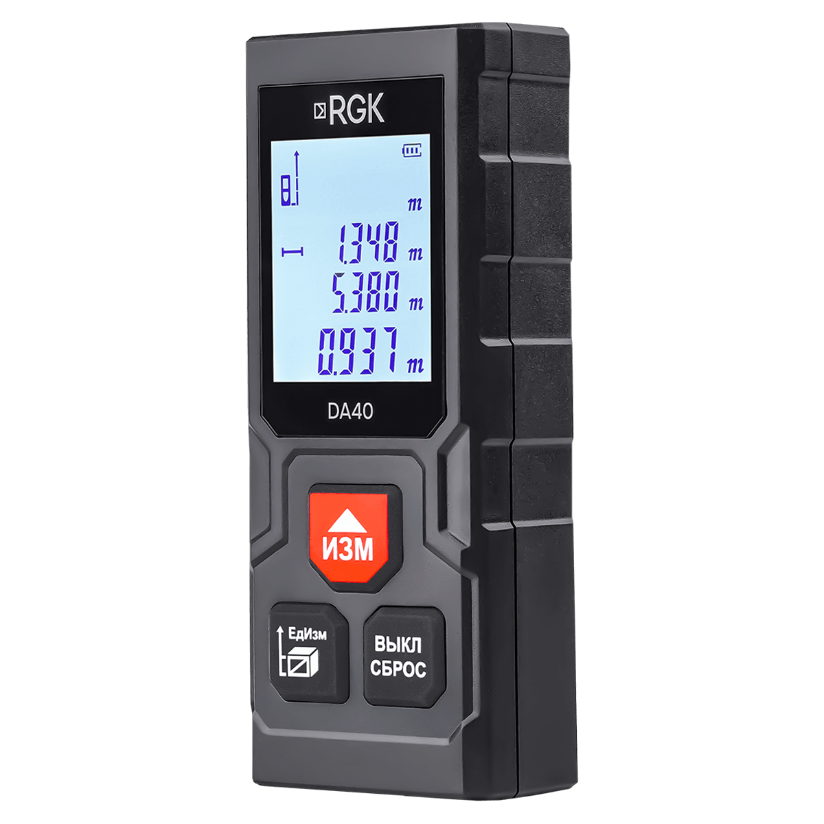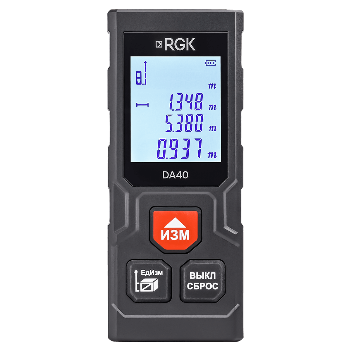 Купить Лазерный дальномер RGK DA40, точность измерения ±2 мм, дальность измерения 40м, батарейки с доставкой по всей России.
