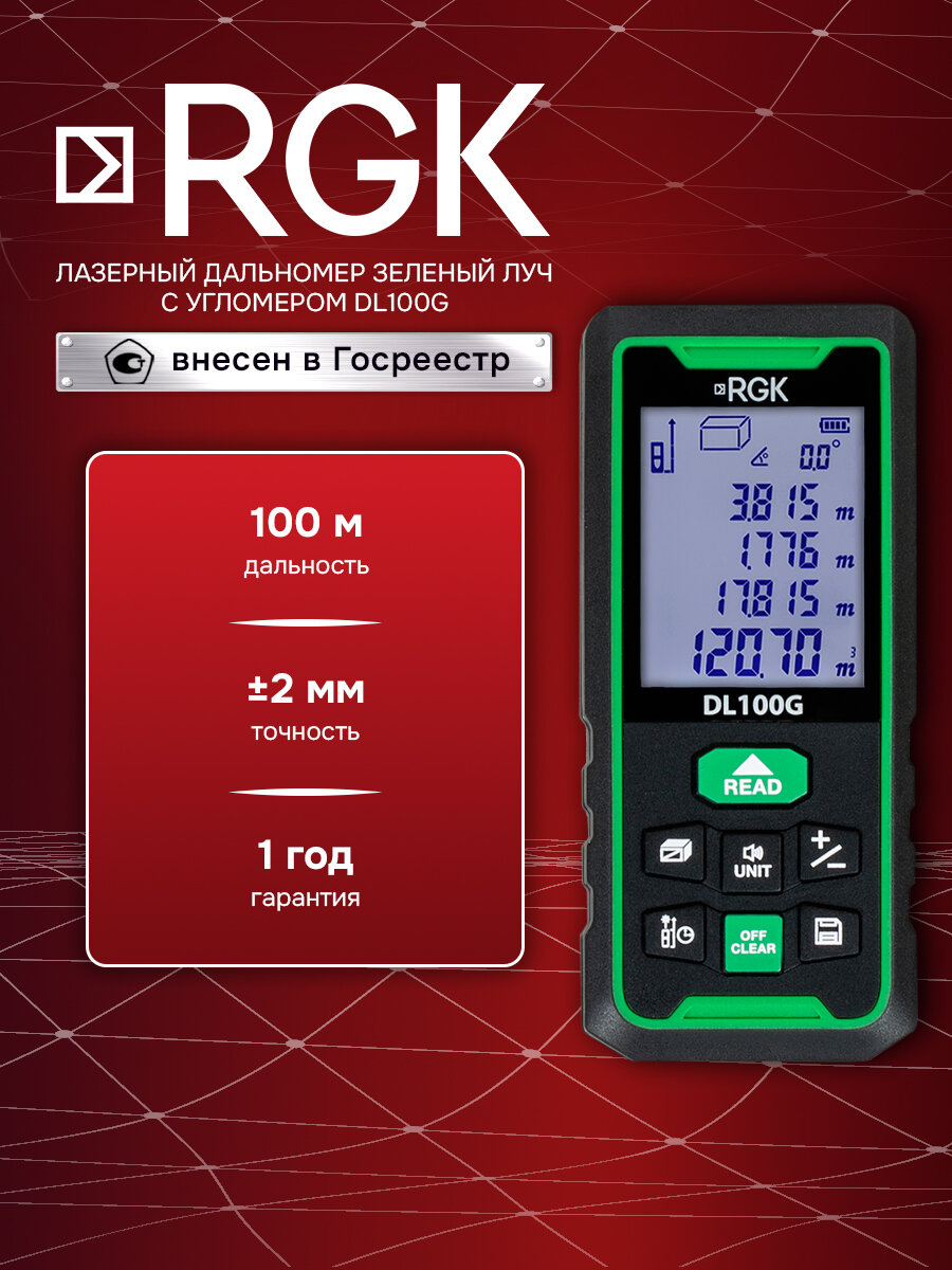 Купить Лазерный дальномер зеленый луч с угломером RGK DL100G, 100м (арт. 778190) с доставкой по всей России. Лазерный дальномер зеленый луч с угломером RGK DL100G, 100м (арт. 778190): сравнение цен, характеристики, фото, актуальное наличие и цены.