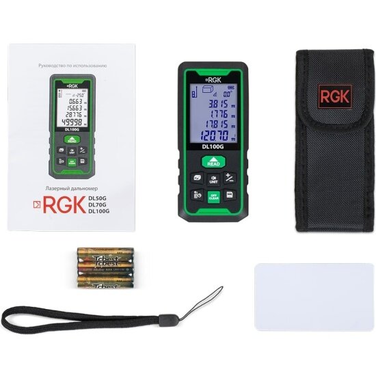 Купить Лазерный дальномер RGK DL100G, с угломером, с поверкой с доставкой по всей России.