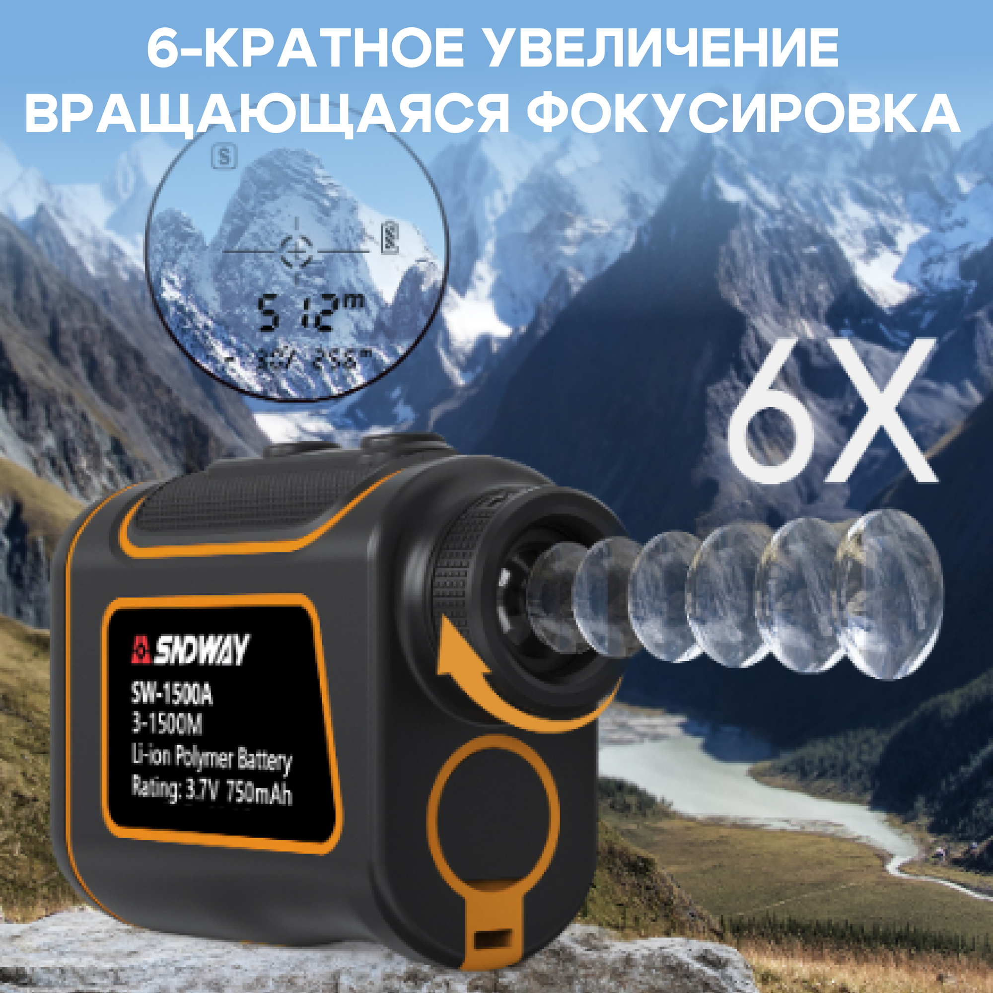 - Шестикратное увеличение: Прибор имеет шестикратное увеличение для удобства измерения больших дистанций.