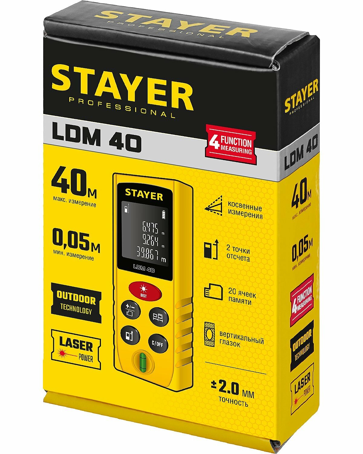 Лазерный дальномер STAYER 40 м с точностью ±2 мм 5 функций измерений и защитой IP54: сравнение цен, характеристики, фото, актуальное наличие и цены.