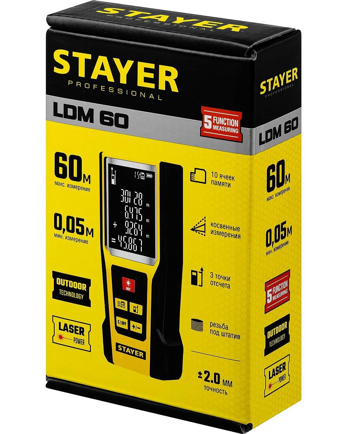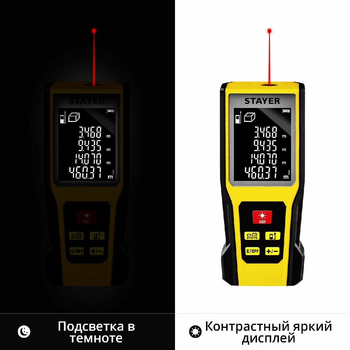 Лазерный дальномер STAYER 60 м с точностью ±2 мм 5 функций измерений питание от 2 АА защита IP54: сравнение цен, характеристики, фото, актуальное наличие и цены.