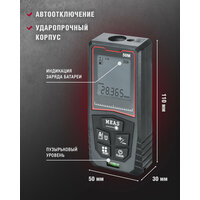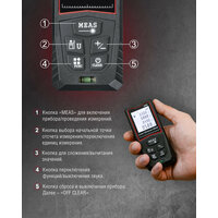 Лазерный дальномер – это простой и надежный в использовании прибор, который позволяет точно измерить расстояние до различных поверхностей или предметов. Можно сказать, что лазерная рулетка – это удобная и функциональная замена обычной рулетки. Строительная рулетка с лазерным уровнем станет незаменимым инструментом для строительных работ, дизайнеров, агентов по недвижимости и многих других профессионалов. Лазерная рулетка Tamirat позволяет выполнять измерение различных параметров: длины, площади, объема, расстояния. Лазерный дальномер также способен складывать и вычитать полученные значения, определять максимальные и минимальные показатели, производить расчеты при помощи функции Пифагора. Электронная профессиональная рулетка с лазером работает в диапазоне 50 метров. Погрешность замера составляет 2 мм. Замеры выполняются с помощью лазера с длиной волны 635 нм. Полученные результаты отображаются на встроенном экране. При необходимости их можно сохранить во внутренней памяти устройства. Для точной калибровки измерительного устройства на его корпусе предусмотрен пузырьковый уровень. Лазерная рулетка Tamirat имеет ударопрочный корпус со степенью защиты IP54, а значит его можно использовать не только внутри помещений, но и на открытом воздухе. Лазерный строительный метр поставляется в комплекте с чехлом, ремешком для ношения и батарейками. Внимание! Категорически запрещается направлять лазерный луч в глаза или на другие части тела.