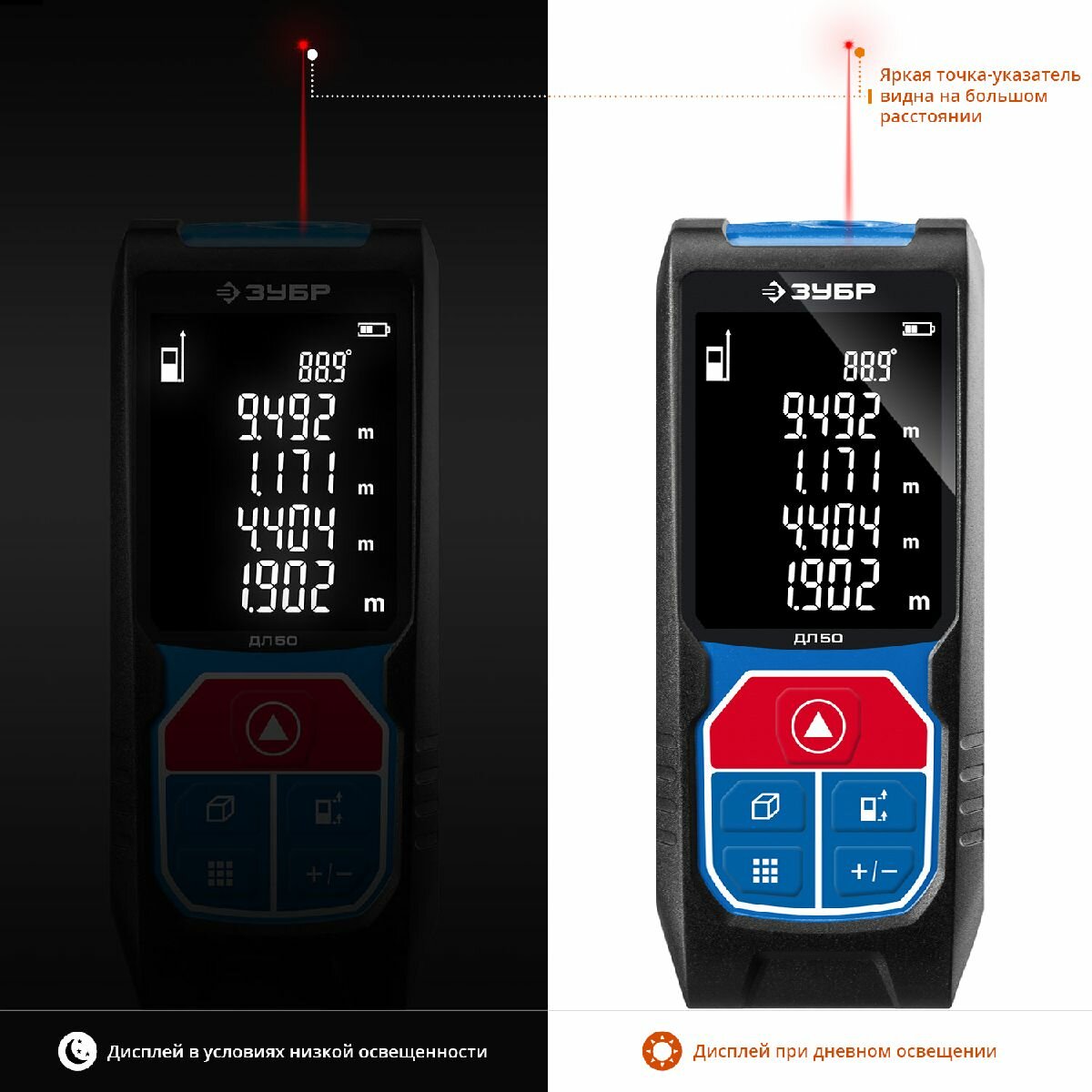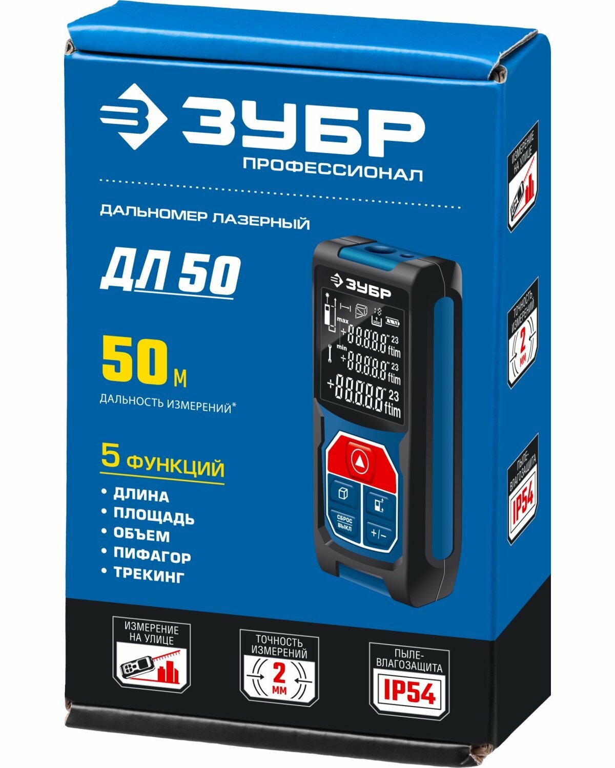 Купить Лазерный дальномер ЗУБР Профессионал 50 м с точностью ±2 мм 5 функций измерений и защитой IP54 с доставкой по всей России.
