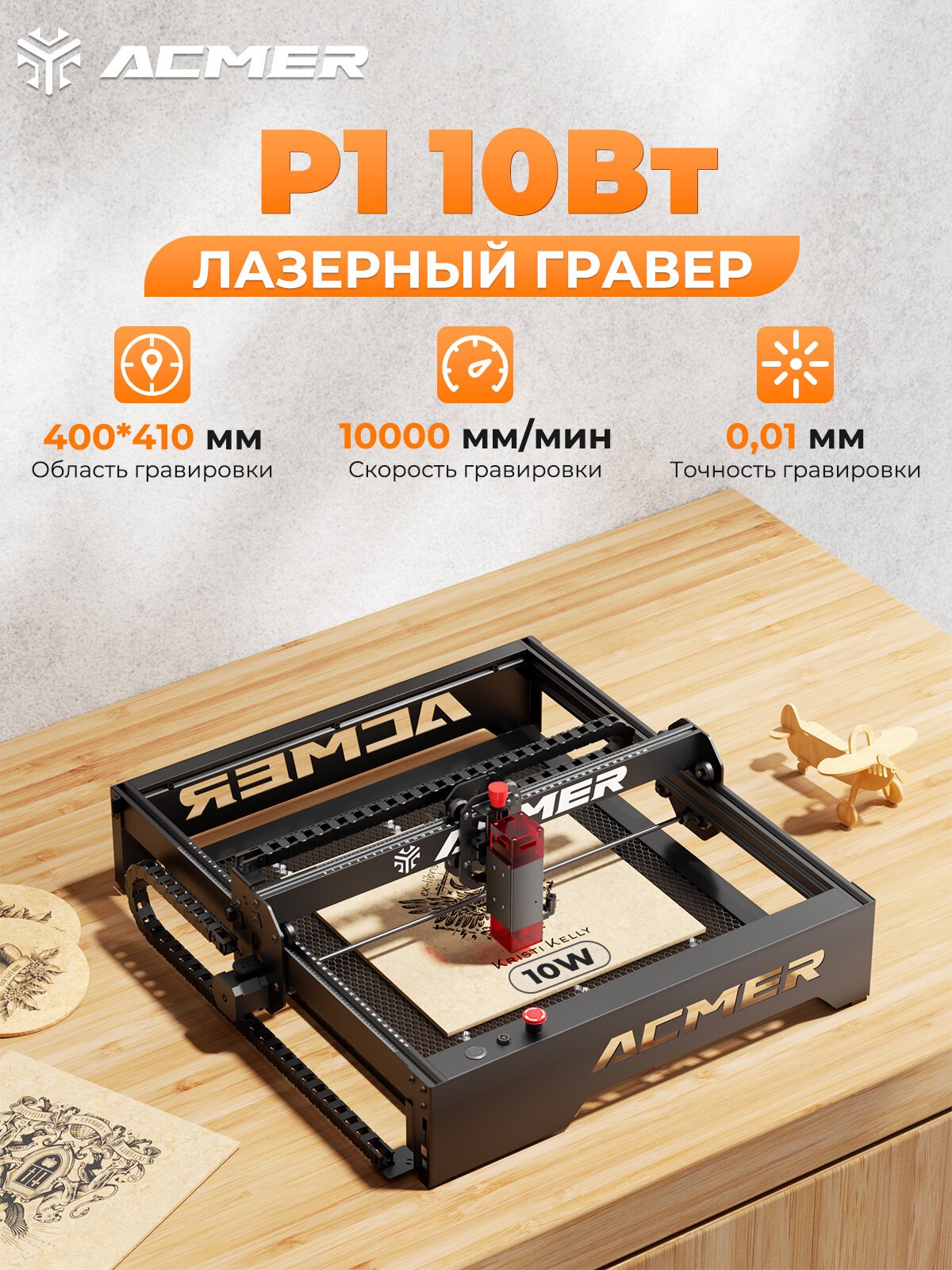 Лазерный гравер ACMER P1 10 Вт, точность 0,1 мм, 400×410 мм, 10000 мм/мин, для гравировки/резки дерева, фанеры, кожи: сравнение цен, характеристики, фото, актуальное наличие и цены.