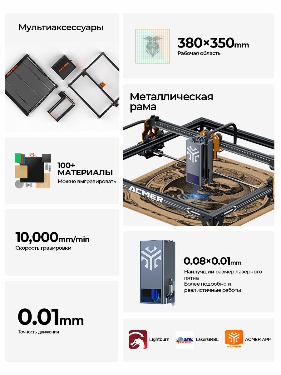 Лазерный гравер ACMER P1 S Pro 20 Вт, оснащенный воздушным насосом, скорость 10000 мм/мин, синий лазерный резак с ЧПУ: сравнение цен, характеристики, фото, актуальное наличие и цены.