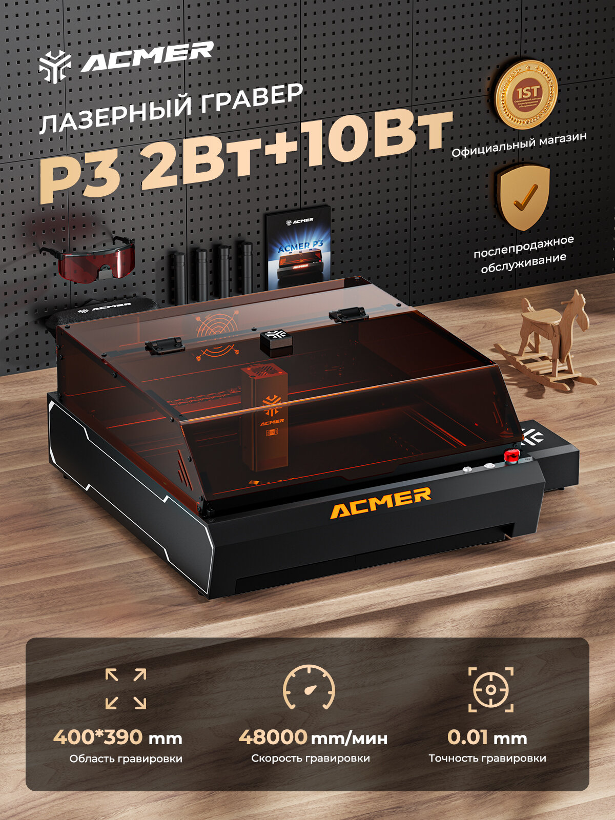 Лазерный гравер ACMER P3 (2+10) Вт, двойной лазер, гравировка по металлу, 48 000 мм/мин, с камерой и воздушным насосом: сравнение цен, характеристики, фото, актуальное наличие и цены.