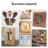 Материалы для обработки: дерево, кожа, акрил, бумага, ткань, металл (анодированный), стекло и др.