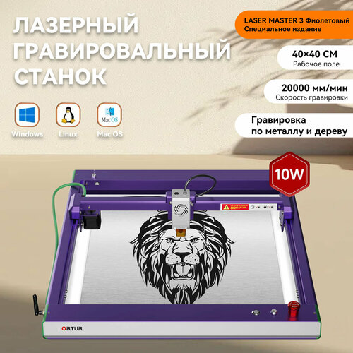 Ortur Laser Master 3 LU2-10A с возможностью управления через приложение и подключением по Wi-Fi предназначен для резки и скоростной гравировки (до 20000 мм/мин) на больших полотнах (400 х 400 мм).