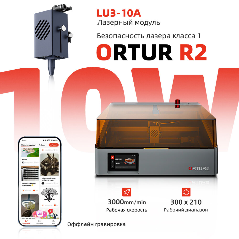 Купить Лазерный гравировальный станок Ortur R2 10w, 300×210мм, Умная резьба с доставкой по всей России.