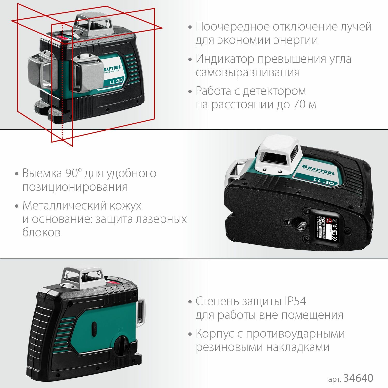 Купить Лазерный нивелир KRAFTOOL LL 3D, профессиональный строительный инструмент 34640_z01 с доставкой по всей России.