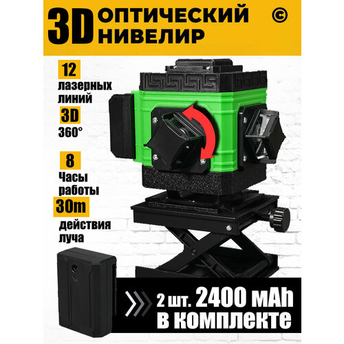 Купить Лазерный уровень 360 градусов строительный самовыравнивающийся ручной цифровой нивелир для ремонта,12 линий, 10 аксессуара с доставкой по всей России.