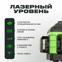 Купить Лазерный уровень 360, уровень строительный, электронный уровень самовыравнивающийся, нивелир лазерный 4d 16 линий с доставкой по всей России.