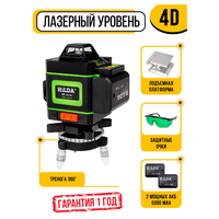 Лазерный уровень Hilda 4d 16 линий: профессиональный инструмент для точных работ Уровень Hilda 4D 16 линий – это лазерный уровень профессионального уровня, который обеспечивает высокую точность и надежность при выполнении строительных и ремонтных работ. С его помощью можно быстро и точно разметить вертикальные и горизонтальные линии, а также перекрестия под углом 90°. Зеленый луч: видимость и безопасность Зеленый цвет луча делает его более заметным на фоне других цветов и менее вредным для глаз по сравнению с красным лучом. Дальность действия луча составляет до 50 метров, что позволяет работать на больших расстояниях. Дисплей и аккумуляторы Лазерный уровень 360 самовыравнивающийся оснащен дисплеем, который отображает уровень заряда батареи. В комплекте идут два аккумулятора, что позволяет работать без перерыва до 8 часов. В комплекте идет зарядное устройство, что обеспечивает удобство использования и возможность заряжать аккумуляторы во время работы. Комплектация и функциональность В комплект поставки лазерного уровня 4D 16 линий входят: - уровень лазерный 4d / 16 line c дисплеем; - 2 аккумулятора (5000 mAh); - тренога 360°; - подъемная платформа (микролифт); - магнитное крепление (кронштейн); - кронштейн для крепления к потолку; - зарядное устройство; - переходник для штатива 1/4 - 5/8; - защитный кейс; - пульт управления; - инструкция; - защитные очки. 4d лазерный уровень /нивелир станет незаменимым помощником и для профессионалов и для любителей, обеспечивая точность и удобство при выполнении различных строительных и ремонтных работ.