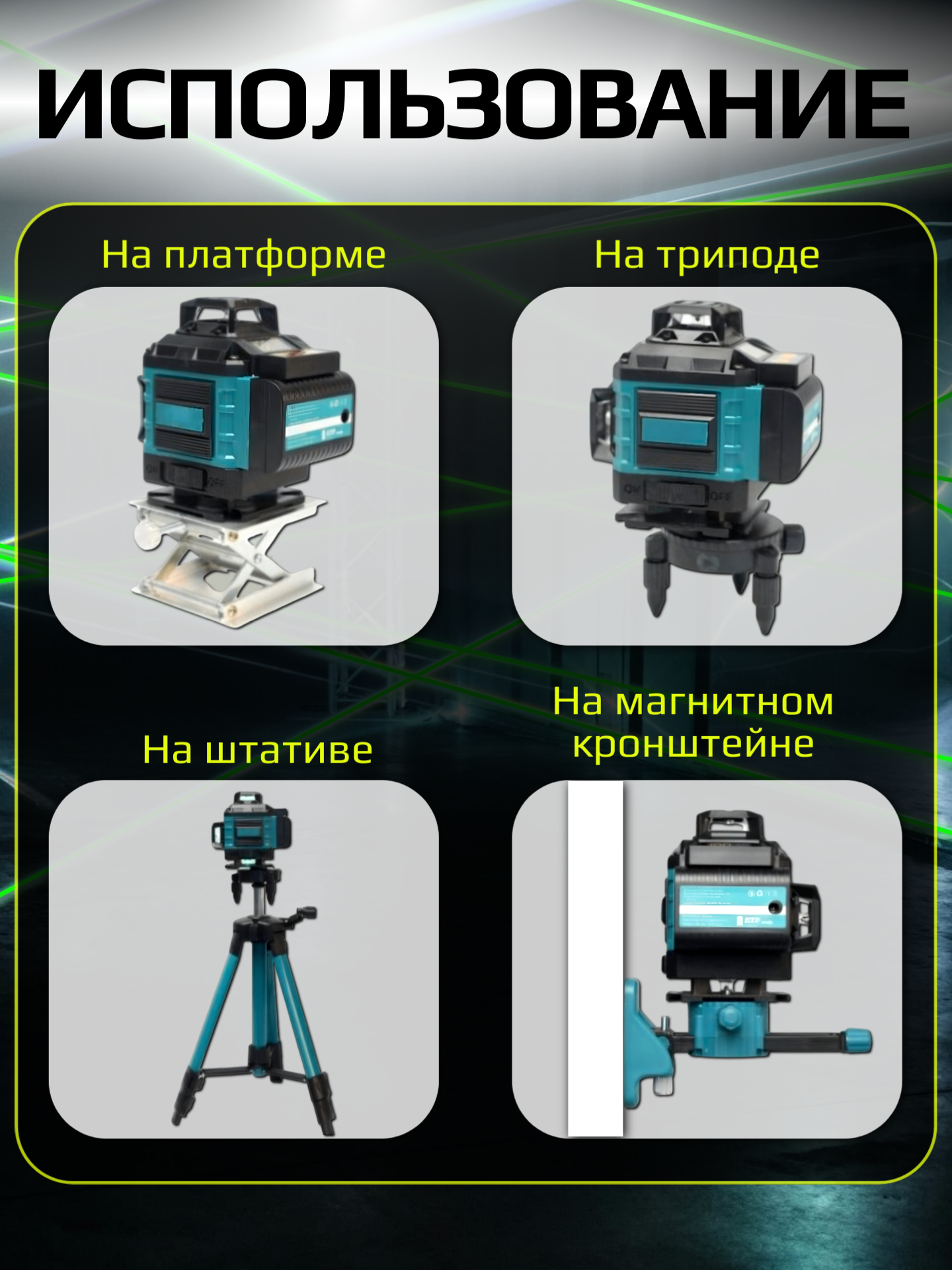 Купить Лазерный уровень 4D 360 16 линий, строительный нивелир с пультом, штативом и зелёным лучом, самовыравнивающийся с доставкой по всей России.