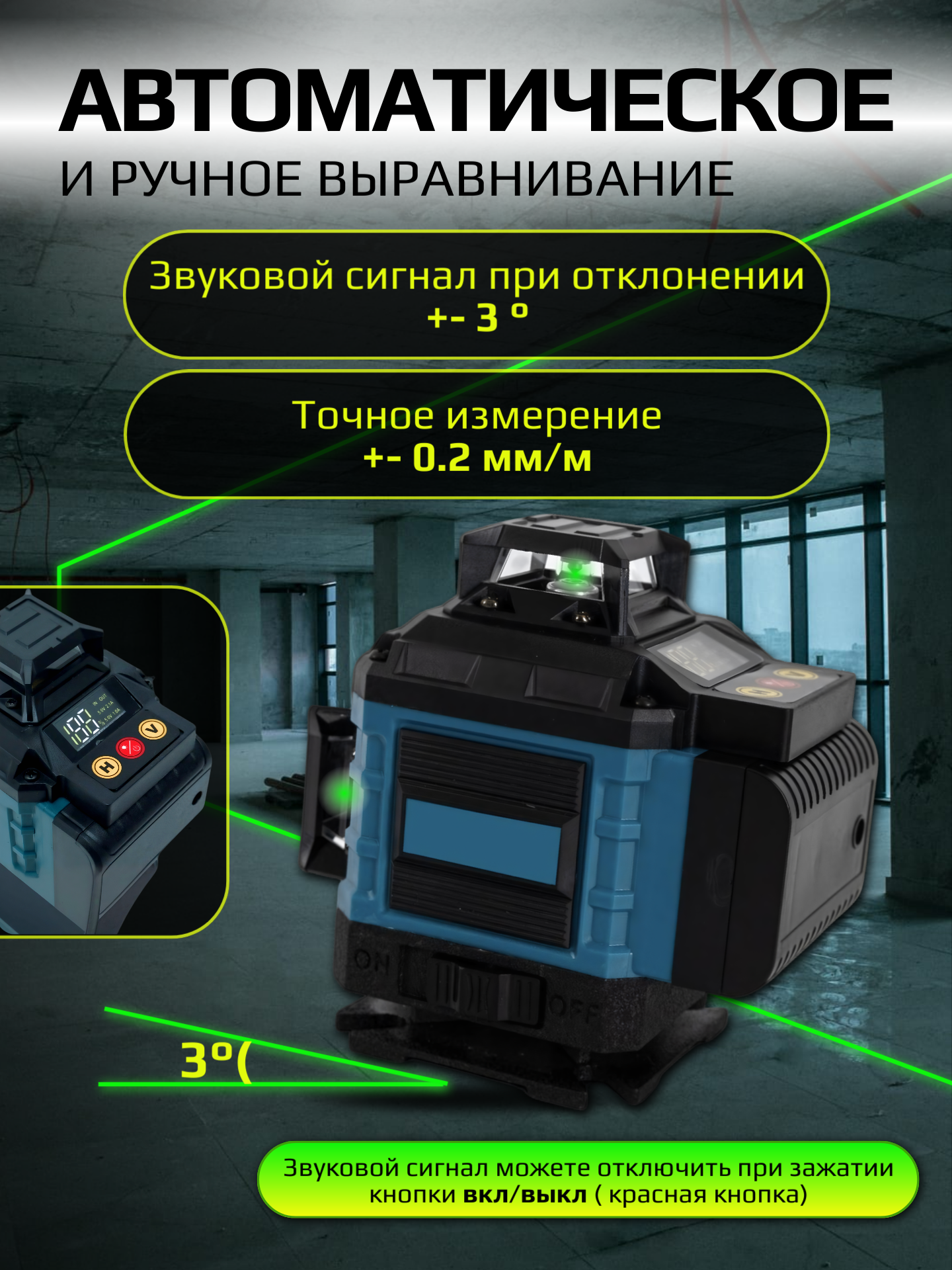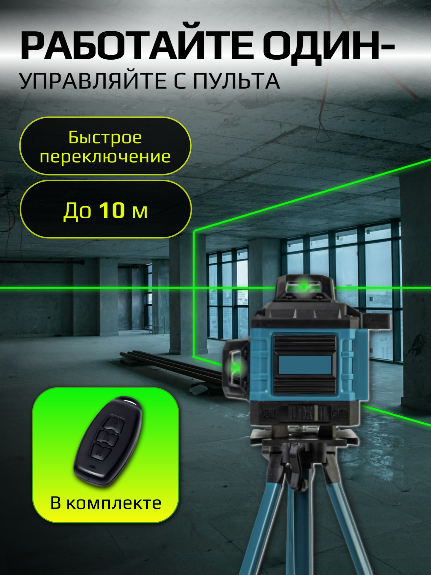 Купить Лазерный уровень 4D 360 16 линий, строительный нивелир с пультом, штативом и зелёным лучом, самовыравнивающийся с доставкой по всей России.