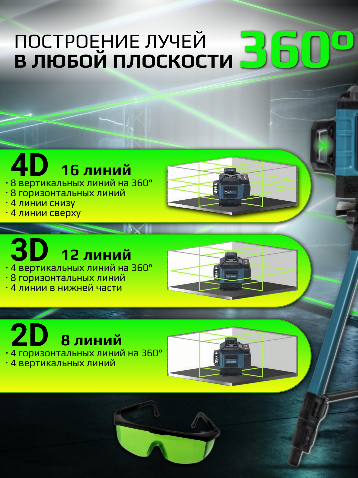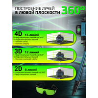Лазерный уровень 4D 360 16 линий, строительный нивелир с пультом, штативом и зелёным лучом, самовыравнивающийся: сравнение цен, характеристики, фото, актуальное наличие и цены.