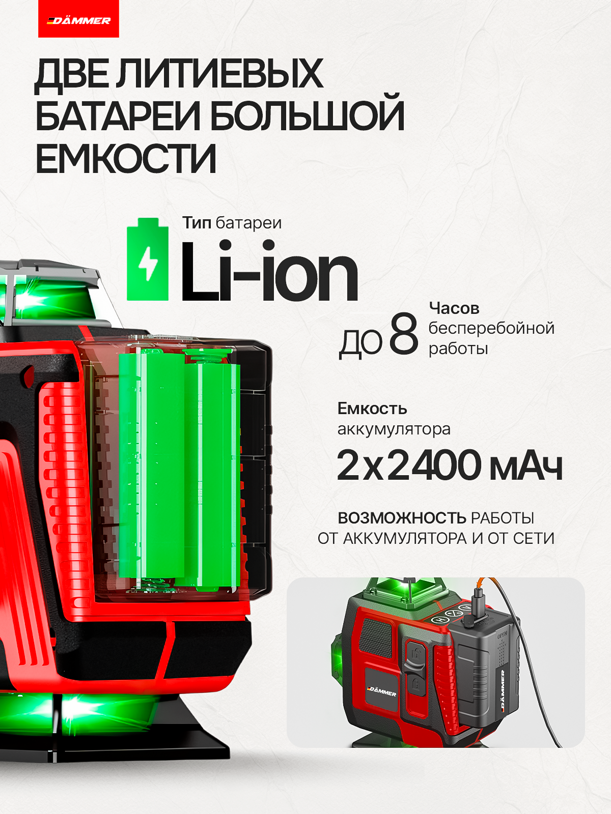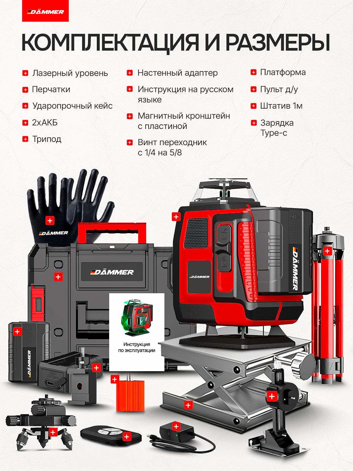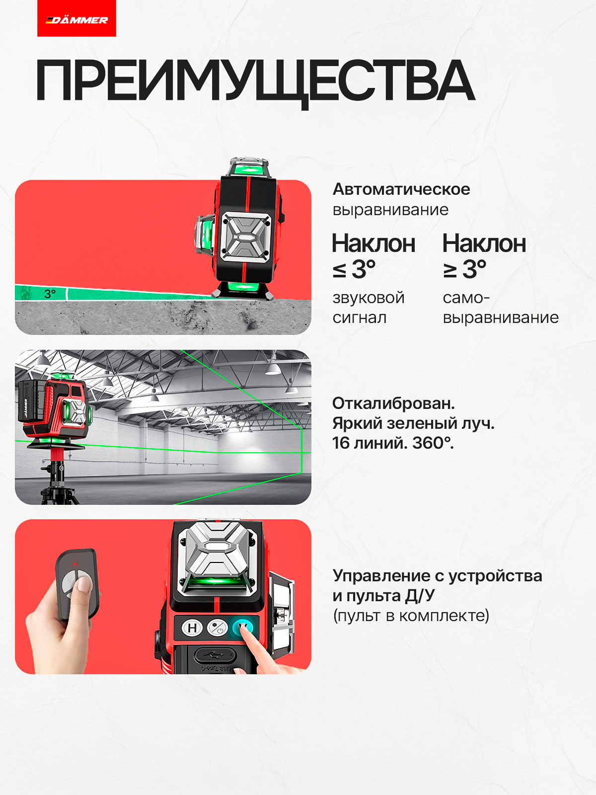 Выбирая лазерный уровень 4D DAMMER, вы получаете надежный и точный инструмент, который станет незаменимым помощником в строительстве и ремонте.