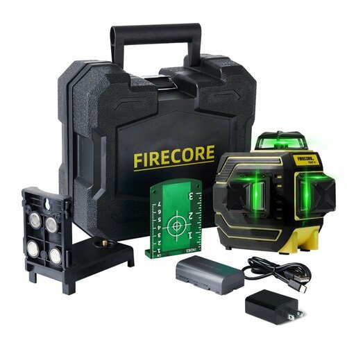 Лазерный уровень профессиональный Firecore F94T-XG 3d 12 линий 360 градусов. Нивелир лазерный. Водонепроницаемый/пыленепроницаемый: IP65. Класс лазера: класс 2. Длина волны: 510-520 нм. Высокая точность: 3 мм/10 м. Диапазон нивелирования: 4 градуса. Время работы (Все лазерные линии): более 10 часов. Расстояние между лазерной линией и стеной/потолком: около 1 см. Расстояние между горизонтальной линией и поверхностью земли: около 11 см. Выравнивания: Гравитационный маятник. Рабочий диапазон : 25 м (3-50 м с приемником). Источник питания: перезаряжаемый литиевый Аккумулятор 7,4 в 2600 мАч .