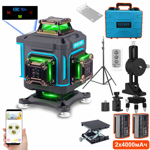 Лазерный уровень Kezers KL4D-03G, Зеленый луч 360 4D 16 Линий, С 2-мя литиевыми батареями емкостью 4000 мАч, штатив 1,6 м, Чемодан: сравнение цен, характеристики, фото, актуальное наличие и цены.