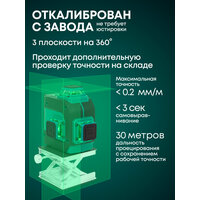 Лазерный уровень Rokodil Ray Pro – это инструмент, предназначенный для построения отвесных точек и направлений, проекции вертикальных и горизонтальных линий. Прибор упрощает выполнение ремонтно-строительных работ, может применяться для контроля качества проведенных работ. Устройство проецирует 12 лазерных линий с углом разверстки 360° и позволяет выполнять разметку как внутри помещений, так и на улице. Благодаря яркому зеленому лучу видимость сохраняется на высоком уровне практически в любых условиях, для удобства использования предусмотрена регулировка яркости (5 режимов). Лазерный уровень оснащен функцией самовыравнивания – если угол наклона инструмента превысит 5°, сработает звуковая индикация, а луч начнет мигать. Дальность построения без приемника достигает 30 и более метров, погрешность не более 0,2 мм/м. Прибор оборудован Li-ion аккумулятором, который обеспечивает более 10 часов автономной работы при средней нагрузке и более 5 часов работы в интенсивном режиме. Rokodil Ray Pro изготовлен из прочных и долговечных комплектующих, на него действует гарантия 5 лет.