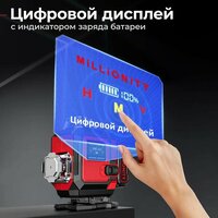 Лазерный уровень Millionity — самовыравнивающейся электронный прибор, который предназначен для внутренней отделки помещений, установки оборудования, выравнивания стен и пола, установки потолочных конструкций, перегородок и монтажа настенного оборудования, нивелировки настенных полок и другое. Работает под углом 360 градусов. Если вы хотите получить наилучший результат при строительстве или ремонте, то нивелир является одним из обязательных инструментов, которым нужно владеть. Он имеет 16 зелёных линий. С помощью них можно создавать в пространстве визуальные плоскости до 30 метров, что позволяет использовать его как для мелких работ, так и для больших проектов. Лазерный уровень имеет несколько режимов работы. При включении лазерного уровня загорается цифровой дисплей с индикатором заряда. Нажимая кнопки Н и V вы можете выбрать соответствующие лазерные линии. Мощный луч, который проецирует линии на потолочную и стеновые поверхности. Также он оснащён зелёным лазером, что делает его более точным и видимым в условиях яркого освещения. Имеет регулируемую подставку (основание), которая позволяет установить его настойке, трипод или на штативе. В комплект входят пульт управления, кейс для хранения, зарядное устройство для батарей. Два аккумулятора, подставка (платформа), трипод и настенный держатель. Резьба для установки на штатив или трипод имеет разъём 1/4˝дюйма. В комплекте имеется переходник с 1/4˝дюйма на 5/8˝дюйма. Прибор пригоден как для эксплуатации в закрытых помещениях, так и на открытых строительных площадках. Это позволяет использовать изделие при любых условиях и обеспечивает длительное время работы. Лазерный уровень 4D также имеет возможность проецировать линии в 3D модели, что поможет вам точно определить расположение стен, потолков, окон и других элементов. Данный инструмент для мужчин поможет достичь наилучшего результата при любых строительных работах.
