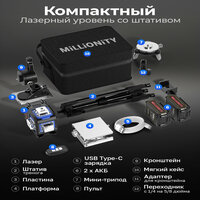 Купить Лазерный уровень Millionity 4D 360°, Профессиональный нивелир, 16 линий, зеленый луч, с аксессуарами в кейсе. с доставкой по всей России.