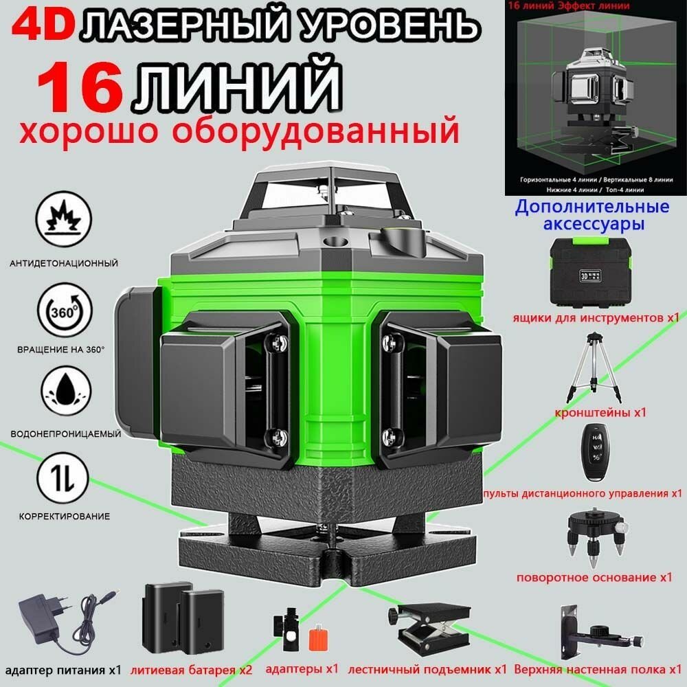 Купить Лазерный уровень нивелир 4D 16 линий 360 градусов с доставкой по всей России. Лазерный уровень нивелир 4D 16 линий 360 градусов: сравнение цен, характеристики, фото, актуальное наличие и цены.