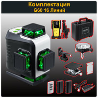 Купить Лазерный уровень/нивелир FIRECORE G60, 4D 16 Линий, Зеленый луч, 2 акб, приемником FD30 с доставкой по всей России.