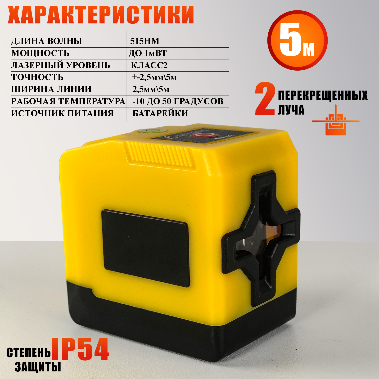 Лазерный уровень нивелир Jane L2D, 2 линии, зеленый луч