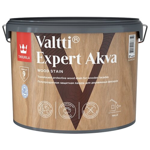 Лазурь фасадная для древесины Tikkurila Valtti Expert Akva - высокоэффективная декоративно-защитная фасадная лазурь. Фасадная лазурь позволяет существенно продлить срок службы древесины и придает ей декоративный эффект, сохраняя ее структуру. Защищает от атмосферных нагрузок, замедляя воздействие влаги, УФ-излучения, синевы и плесени. Для максимально эффективной защиты необходимо комплексное использование биозащитной грунтовки Tikkurila Valtti Expert Base и лазури Tikkurila Valtti Expert Akva, особенно для нижних венцов зданий. Бесцветную лазурь для дерева рекомендуется использовать только в колерованном виде. область применения Valtti Expert Akva предназначена для отделки и защиты вертикальных деревянных поверхностей из вагонки, клееного бруса, строганных и пиленых дощатых фасадов, а также балок, перил, откосов, подверженных атмосферной нагрузке. Лазурь для дерева для наружных не рекомендуется наносить на бревно и свежий брус. преимущества аква лазурь для дерева - стойкая защита древесины до 9 лет усиленная воском защита от влаги и УФ-фильтр антисептик Valtti Expert Akva - экстра-защита от синевы, плесени и гнили 6 готовых цветов + 40 колеруемых оттенков подготовка поверхности Неокрашенные поверхности Поверхность тщательно очистить от загрязнений и пыли, посторонних включений. Загрязненные и покрытые плесенью участки промыть раствором Tikkurila Homeenpoisto, соблюдая инструкцию по применению. Перед обработкой свежего бруса необходимо убедиться в том, что соблюдены сроки выдержки и усадки материала. Обязательным этапом перед окраской является шлифовка бруса. Далее необходимо загрунтовать поверхность в наиболее ранней стадии строительства биозащитной грунтовкой Tikkurila Valtti Expert Base, которую также рекомендуется использовать для «консервации» древесины перед последующей окраской. Грунт Tikkurila Valtti Expert Base использовать в соответствии с технической спецификацией. Особенно тщательно следует грунтовать торцевые концы деревянных конструкций, места стыков и все поверхности, подвергающиеся сильной нагрузке. Следует учитывать, что биозащитная грунтовка не защищает поверхность от разрушающего воздействия УФ-излучения. Ранее окрашенные поверхности С ранее окрашенной поверхности полностью удалить предыдущее лакокрасочное покрытие. Поверхность отшлифовать, пыль удалить. Очистить поверхность от грибка, гнили и плесени. При необходимости промыть ее раствором Tikkurila Homeenpoisto, соблюдая инструкцию по применению. Старое покрытие можно удалить механическим способом, например, с помощью жесткой щетки или пескоструйкой, или подходящим химическим средством. С точки зрения сохранения строения древесины химическое удаление более предпочтительно. Очищенную до чистой древесины поверхность загрунтовать биозащитной грунтовкой Tikkurila Valtti Expert Base. Не обрабатывать мерзлую древесину. Металлические детали (гвозди, скобы и др.) следует предварительно обработать антикоррозионным составом. нанесение Окрашиваемая поверхность должна быть сухой и чистой. Влажность древесины должна быть ниже 18%. Во время окраски и высыхания температура воздуха должна быть не ниже 5°С, а относительная влажность воздуха – не выше 80%. Лазурь для дерева для наружных работ перед применением тщательно перемешать. Наносится защитная лазурь для дерева в 2-3 слоя кистью, валиком, губкой или краскораспылителем по направлению волоко
