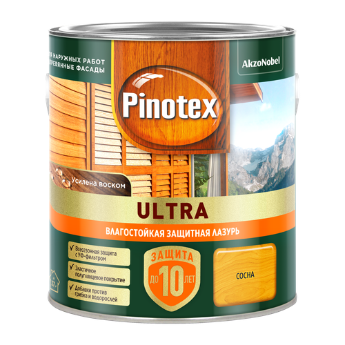 Влагостойкая лазурь на масляной основе для комплексной защиты древесины от атмосферных явлений до 10 лет. Состав усилен воском, обеспечивая повышенные грязе- водоотталкивающие свойства покрытия. Связующее лазури разработано с использованием технологии трибрид. Подчеркивает естественную текстуру древесины, полуглянцевая. С УФ-фильтром для дополнительной защиты от солнечных лучей и добавками против плесени и синевы. Рекомендуется применять в системе с грунтовкой Pinotex Base для усиления защитных свойств.