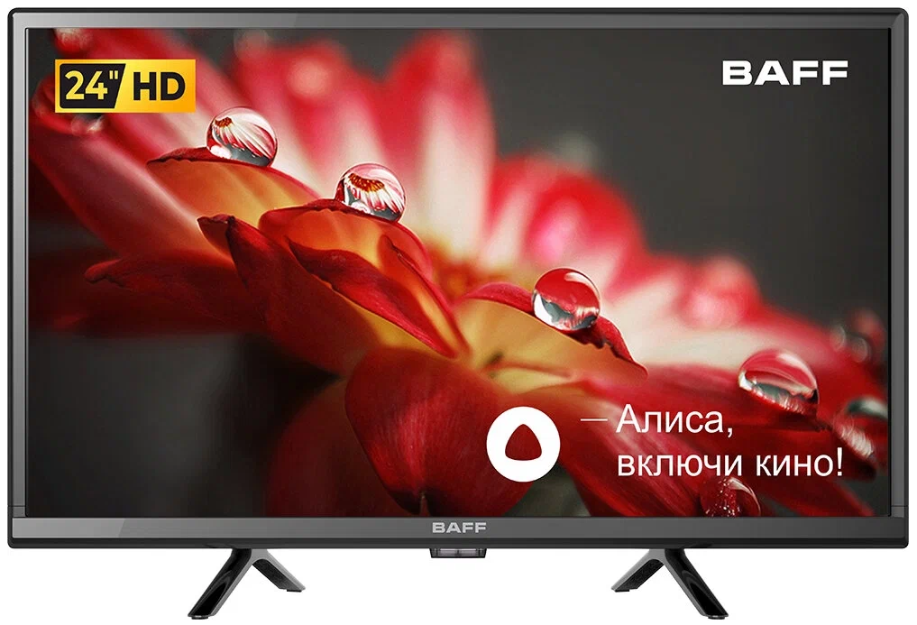 Телевизор BAFF 24Y HD-R, 24 дюйма, HD, Smart TV, голосовое управление Алиса, Wi-Fi, черный: сравнение цен, характеристики, фото, актуальное наличие и цены.