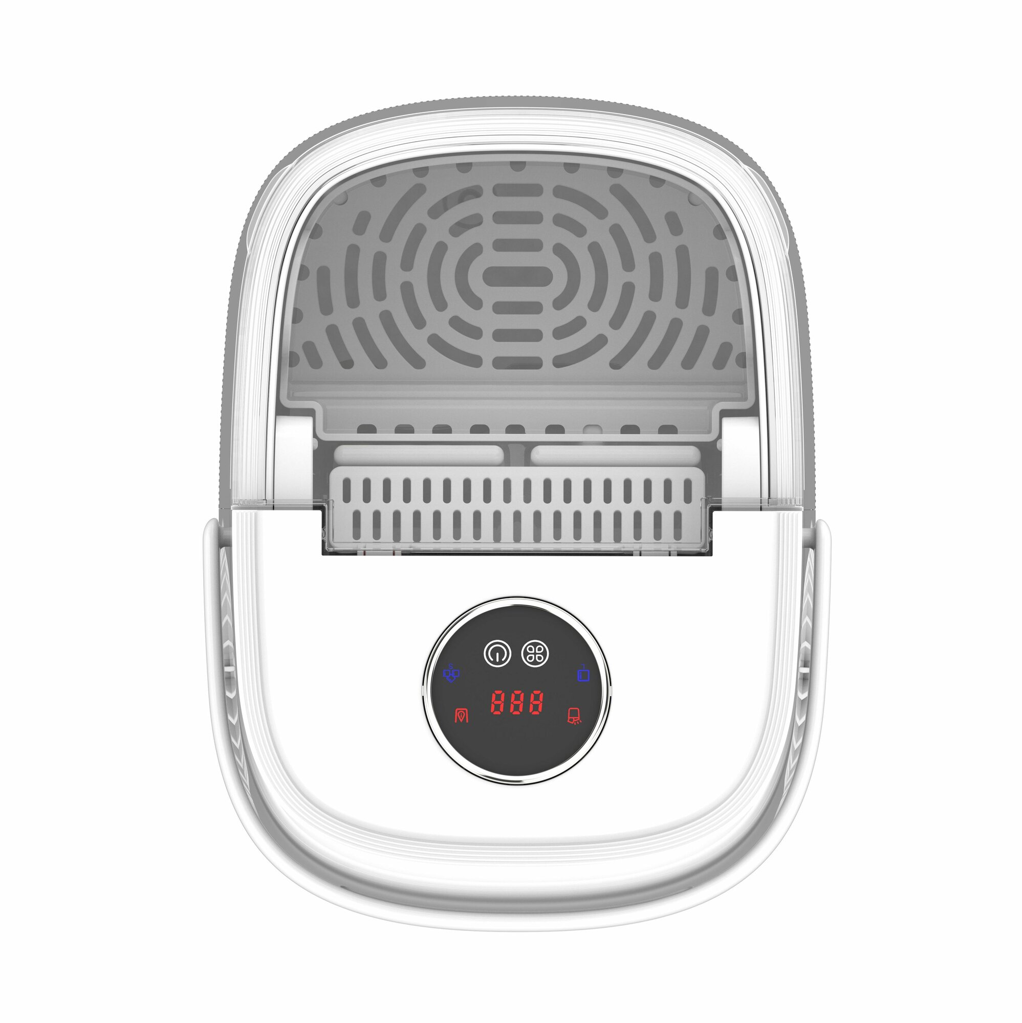 Удобный интерфейс с возможностью выбора размера льда (кнопка L - большой лед, кнопка S - маленький лед), индикатором заполнения бункера для льда, а также индикацией необходимости добавления воды. Также льдогенератор оснащен функцией очистки.