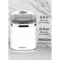 Генератор для приготовления льда не требует подключения к водопроводу. Вода заливается в ёмкость, объем которой составляет 2,2 л. Готовый лед попадает в бункер, вмещающий до 0,4 кг льда. Производительность ледогенератора 12-15 кг в сутки. Приготовление одной порции льда занимает 6-8 минут в зависимости от выбранного размера льда и температуры окружающей среды.