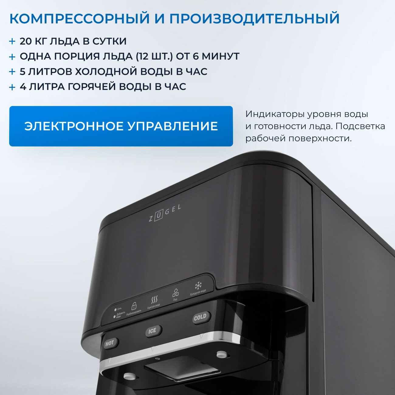 Купить Льдогенератор-диспенсер Zugel ZIM2002 черный с доставкой по всей России.