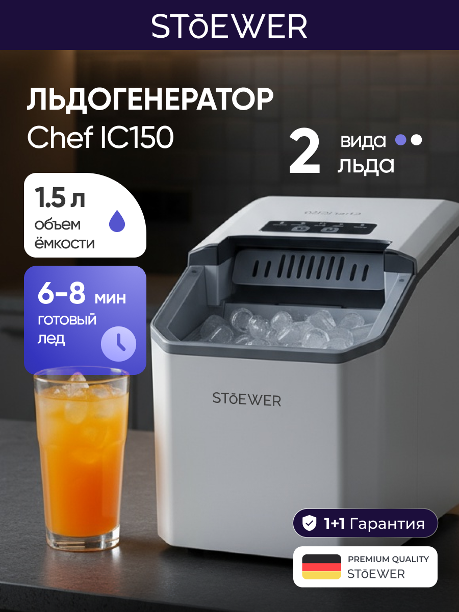 Купить Льдогенератор для дома Stoewer Штоер Chef IC150, 2 вида льда, 1,5 л с доставкой по всей России. Льдогенератор для дома Stoewer Штоер Chef IC150, 2 вида льда, 1,5 л: сравнение цен, характеристики, фото, актуальное наличие и цены.