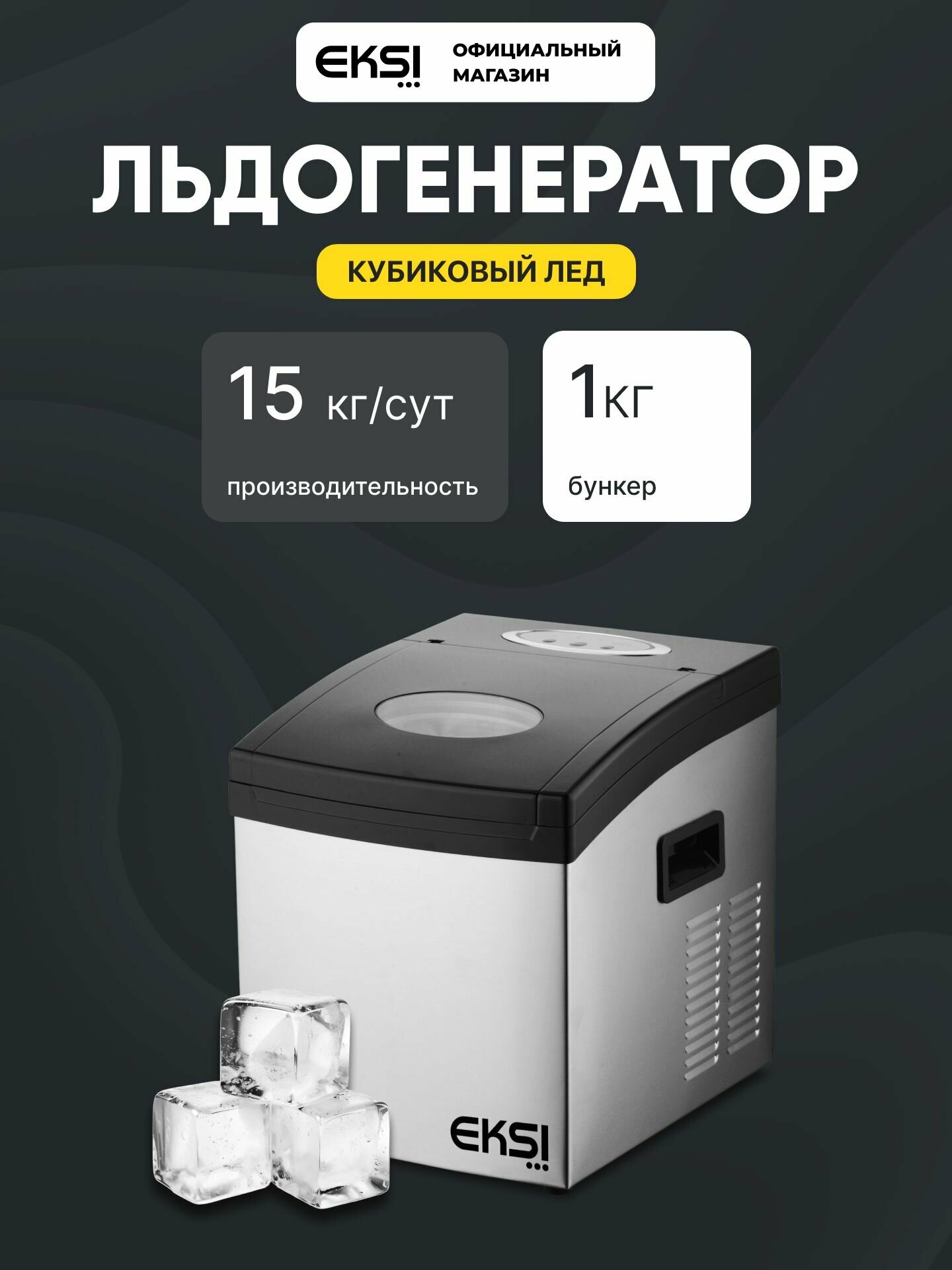 Купить Льдогенератор кубикового льда EKSI EC15A. Генератор льда для кафе, кофейни, бара, дома кубиковый. Ледогенератор заливной. с доставкой по всей России.