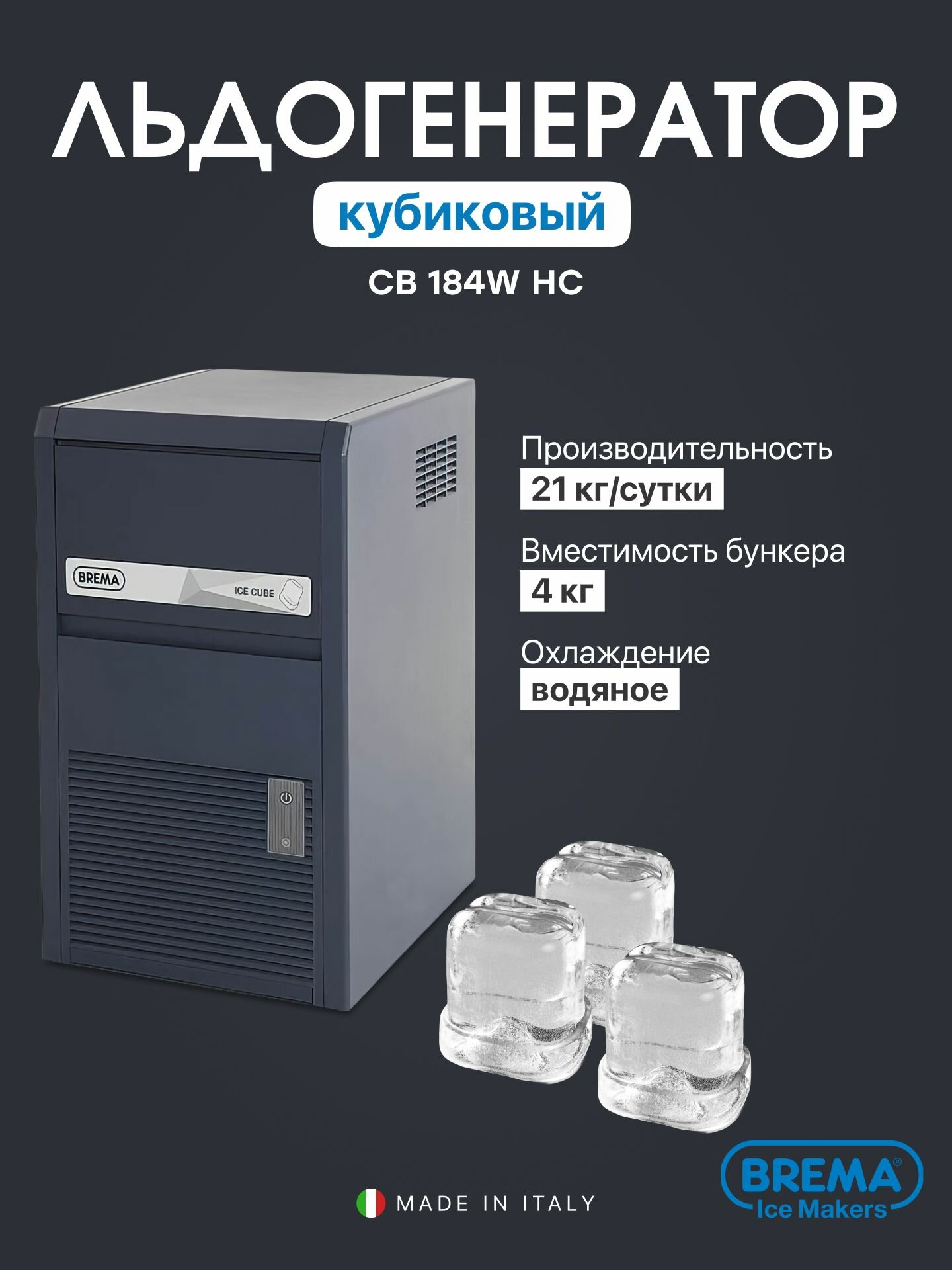 Купить Льдогенератор профессиональный кубиковый Brema CB 184W HC, 21 кг/сутки, бункер 4 кг с доставкой по всей России.