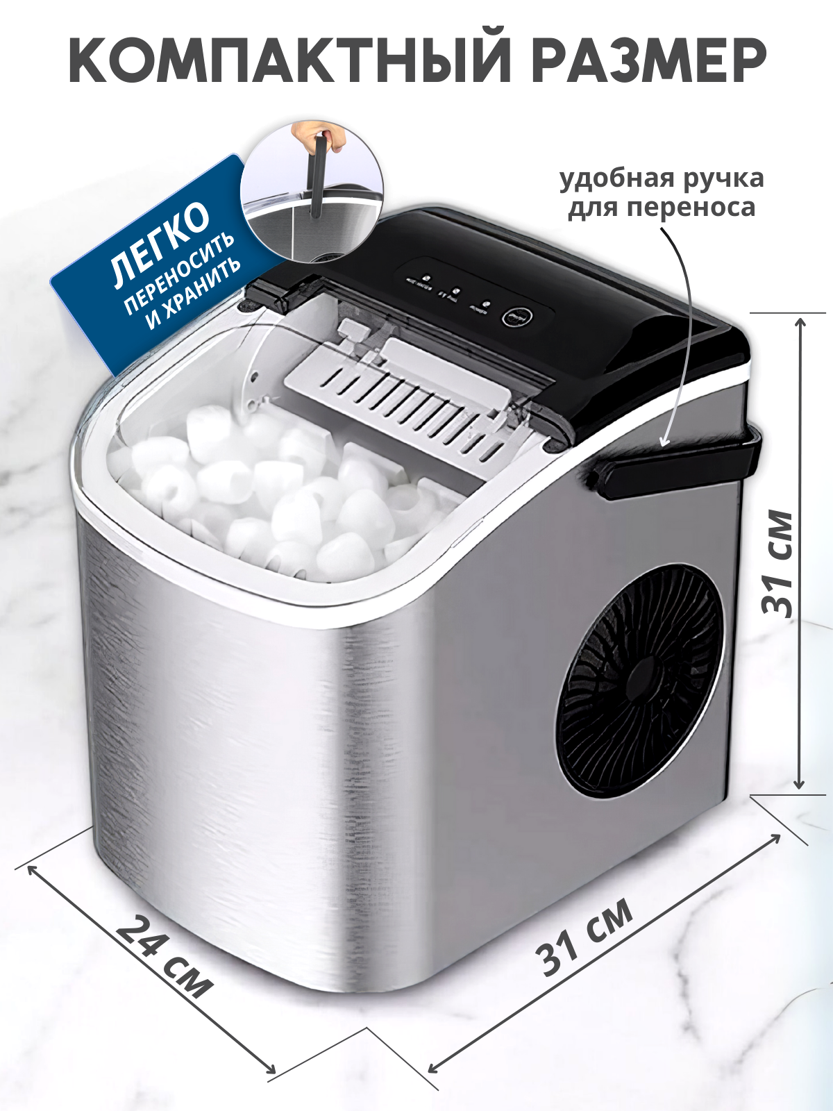 Льдогенератор UR HOME для дома маленький заливной пальчиковый, генератор льда для бара, кафе / ледогенератор для дома
